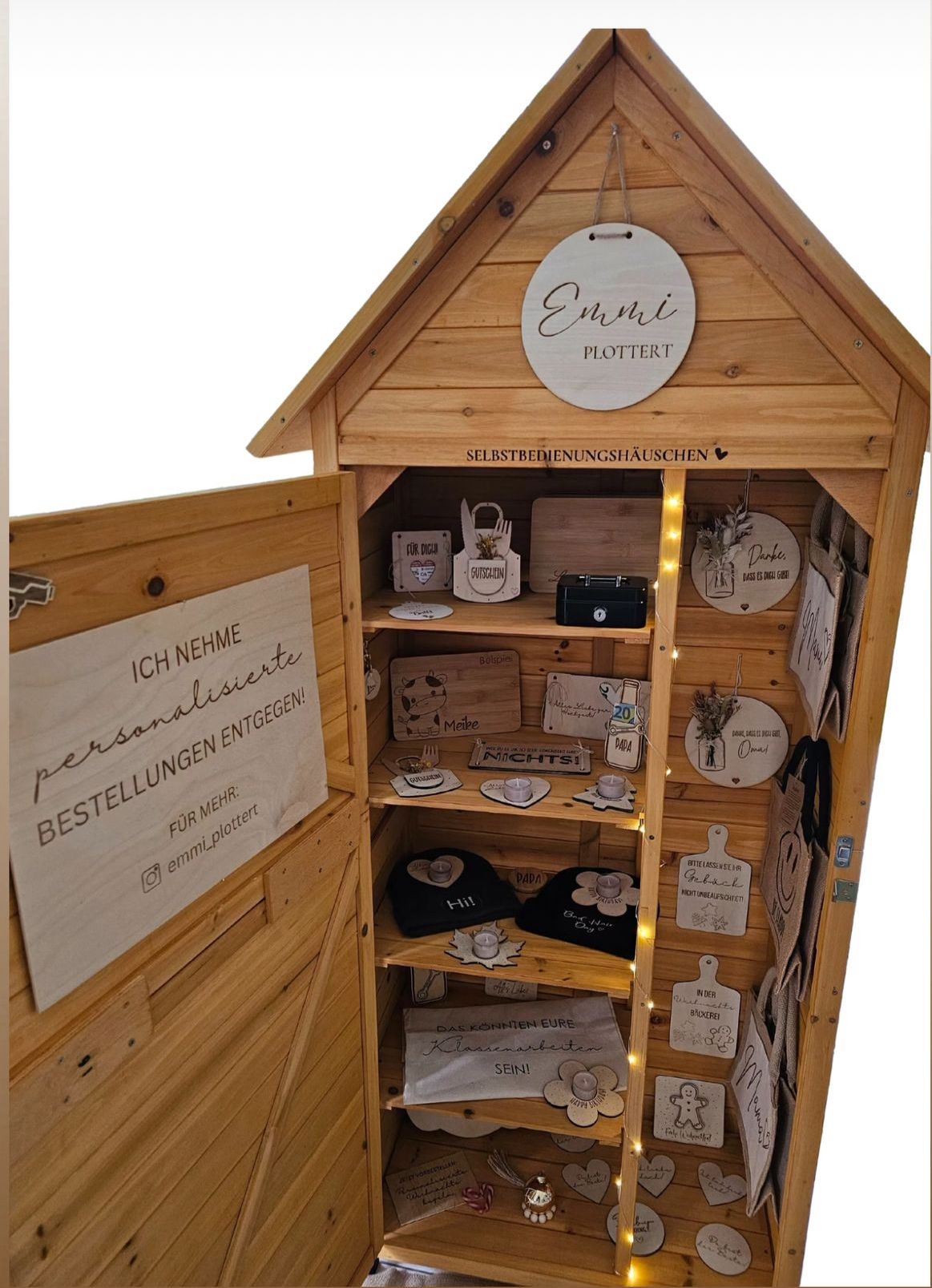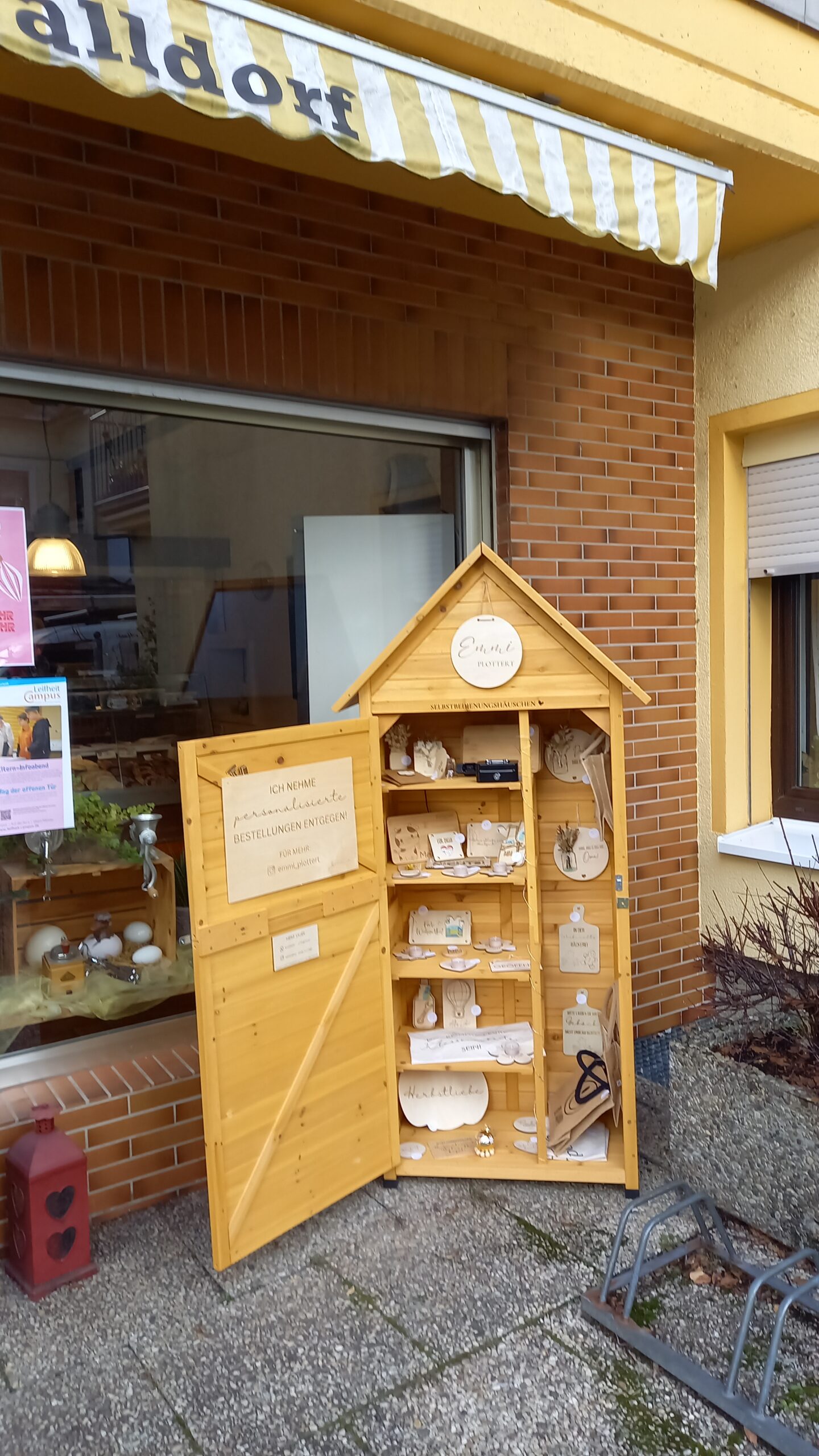 Ein neues Selbstbedienungslädchen wurde kürzlich vor der Bäckerei Walldorf eröffnet. Und das genau zur richtigen Zeit für viele, die noch auf der Suche nach einem persönlichen Weihnachtsgeschenk sind. Aber auch zu Geburtstagen, Hochzeiten und sonstigen Feierlichkeiten steht eine große Auswahl zur Verfügung. In dem immer zu den Geschäftszeiten der Bäckerei geöffneten Holzhäuschen gibt es allerhand Geschenkartikel, die sich hervorragend mit Namen oder sonstigen Textbeispielen personalisieren („plottern“) lassen und damit ein ideale Geschenkidee darstellen. Alles Wichtige und auch die Kontaktdaten erfährt man im kleinen Holzlädchen oder auch im großen Bäckerladen direkt nebenan.