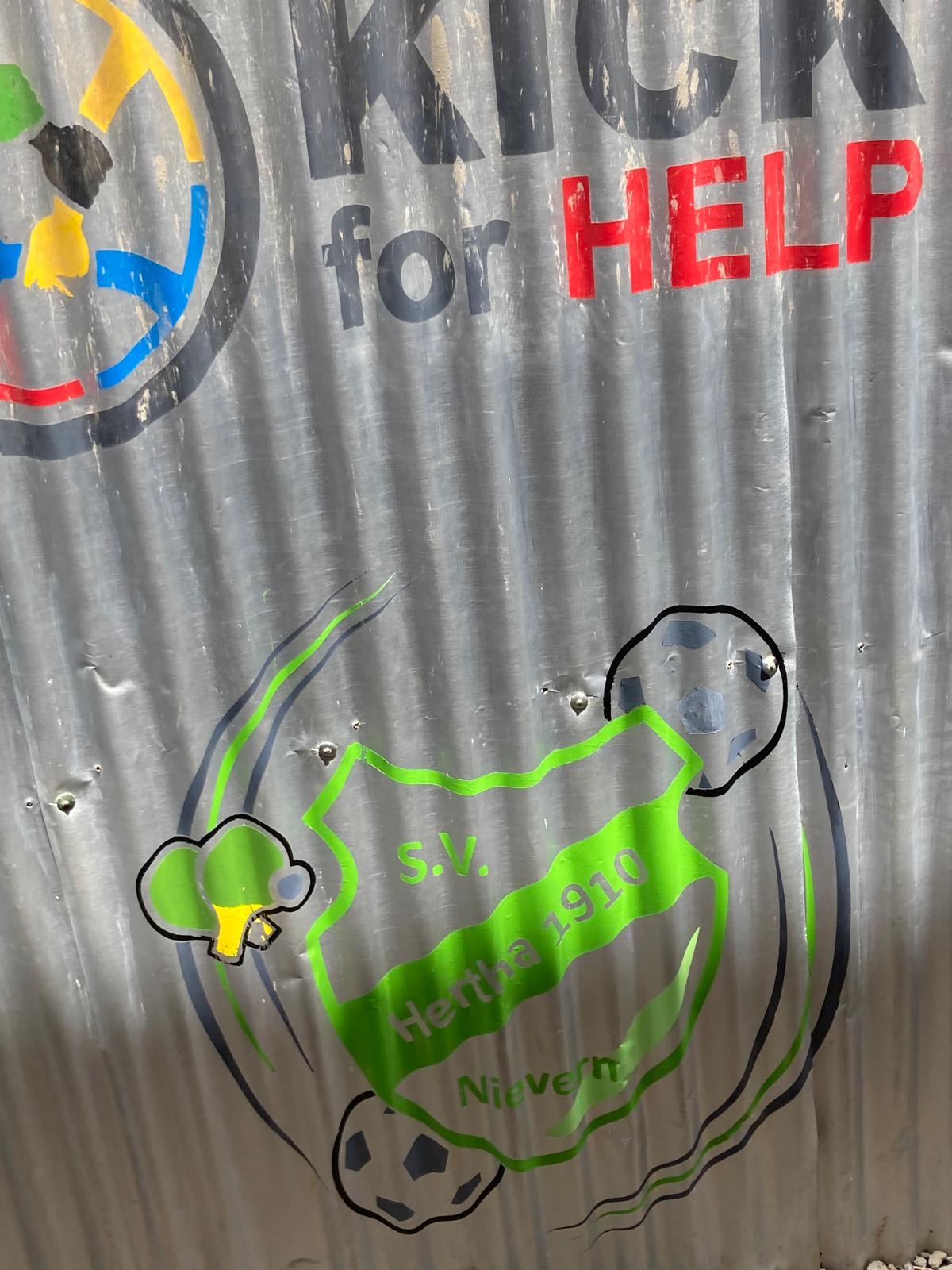 So konnte mit der Unterstützung aus dem Jubiläumsspiel der Hertha an der Becky Scool in Kibera (Kenia) für dauerhaftes Trinkwasser für alle Schülerinnen und Schüler gesorgt, eine neue Toilettenanlage fertiggestellt und ein neuer Schulgarten angelegt werden, der von den Kindern mit großer Begeisterung gepflegt wird. Norbert Neuser war vor Kurzem vor Ort, um sich dort von den geleisteten Arbeiten und den Fortschritten selbst zu überzeugen. Dabei konnte er festzustellen, dass als kleinesDankeschön der Schulgemeinschaft jetzt sogar das Logo des SV Hertha Nievern mitten in Afrika an einer Wand der Becky Scool in Kibera prangt! Was für ein tolles Update zum Jubiläum der Hertha, aber auch der Gemeinde, verbunden mit einem großen Dankeschön an alle, die das möglich gemacht haben!