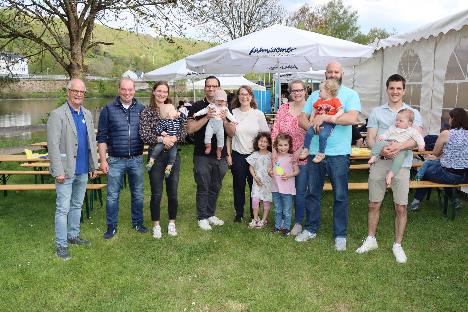 Mit dem obligatorischen Fassanstich wurde die Kirmes auf dem Festplatz an der Lahn offiziell eröffnet, dem sich die feierliche Proklamation der neuen Schützenkönige anschloss, ehe Ortsbürgermeister Lutz Zaun die sechs im letzten Jahr neugeborenen Kinder mit einem Willkommensgeschenk in die Dorfgemeinschaft der „Heckeböck“ aufnehmen konnte.